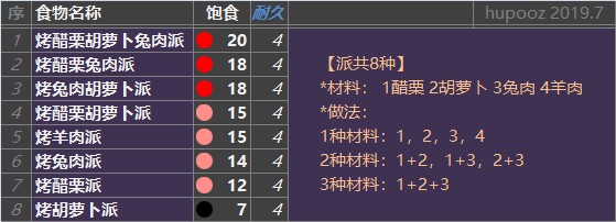 饱食度:一罐炖菜可以舀8碗,每碗可吃2次,每次+14饱食度