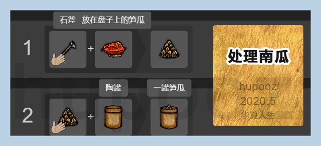 · 把南瓜放在盘子上,用石斧砍一下,倒在陶罐里