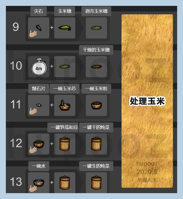 · 从植物上摘下来的玉米穗,用尖石刮一下去皮,等待4分钟变成干燥的玉米穗,