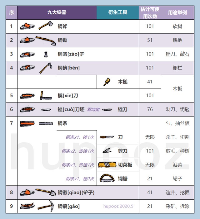 钢斧是一共敲1下,其他八个就是趁热用敲2/3/4/5/6/7/8/9下~(铲子是敲8下)