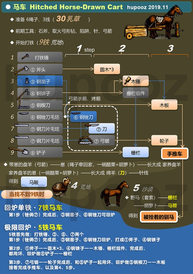 但有时候找不到9个铁,可以利用回炉,只有7铁,甚至5铁做出马车。