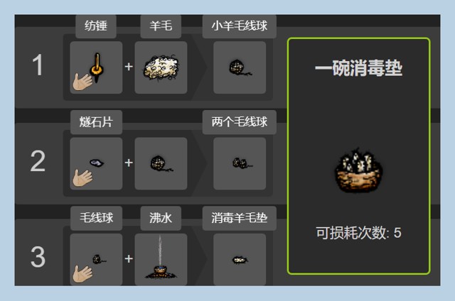 1)刀,放火上烤一下,得到⭐消毒刀,持续30s