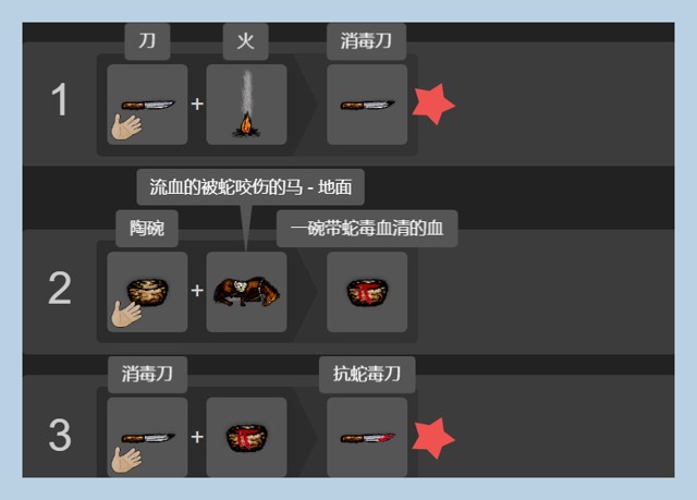 3)⭐抗蛇毒刀 = 消毒刀+马血