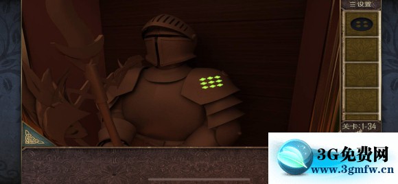 根据右边盔甲上的提示,把桌子下面的门调成一样,里面有九张纸牌,放上手电筒和纽扣,得到墙上的花纹是♥️,♠️,♣️,♦️,柜子里有四排球,按照这个顺序把台球桌上的台球连起来,得到门的密码是5271
