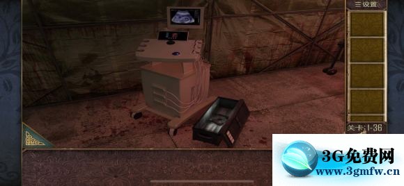 关卡1-36 旋转图一中的按钮,可知地上的箱子密码是:5186,里面有一张光盘,放进电脑,完成拼图,获得一根小撬棍,撬开图四中的箱子,拿到一个仪表,右边第一张床上有一个把手,把仪表和把手都安在门旁边的管子上,获得门钥匙,完成✅ 关卡1-37