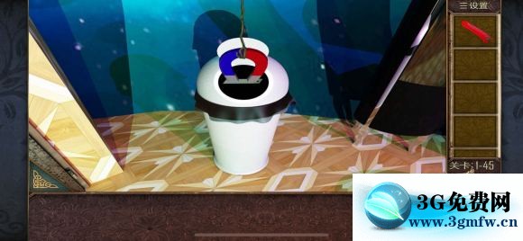 从垃圾桶里吸上来一个刀片,划开枕头,拿到钥匙,打开柜子,获得望远镜,看顶上的球,知道密码4689,打开柜子,获得螺丝刀,卸掉洗手台处的板子,结合门上的提示,打开机关,拿到房门钥匙