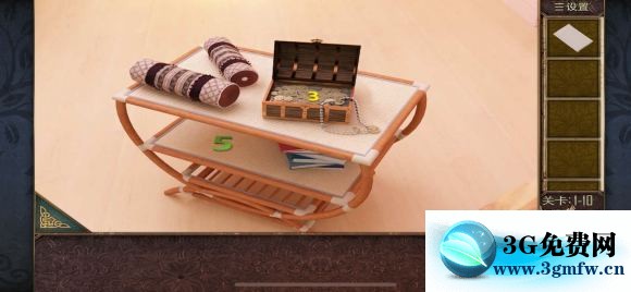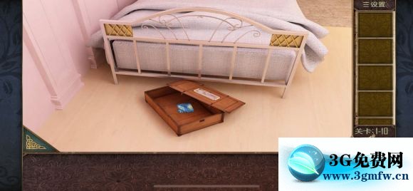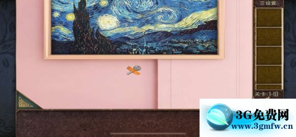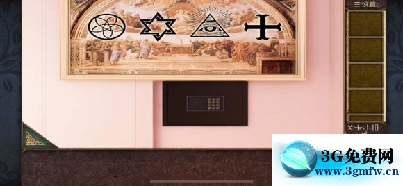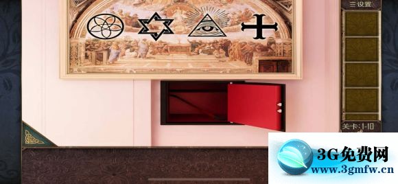 桌子下面拿到毛巾,擦干净墙上的镜子,得到提示,按提示打开墙上的画