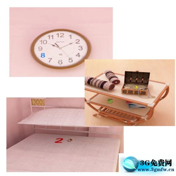 枕头下面得到拉环,打开桌子上的盒子,结合发现的线索(图6)得到密码,打开箱子,得到撬棍,打开床下面的盒子,拿到最后一块拼图,拼好墙上的星空,得到房间钥匙!完成