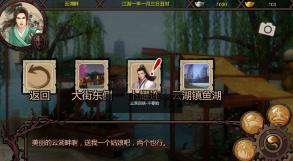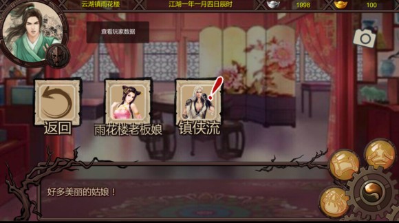 然后会在湖畔碰到不要脸。因为输惨了,所以**鱼。还会送你鱼 然后会在路上遇到银坚兄。 游客送到这里。得到小费。嘿嘿。 这时候银坚兄也来赌场了。清掉。 然后就可以在雨花楼碰到侠流兄了,侠流兄很大方送你一次姑娘玩儿。