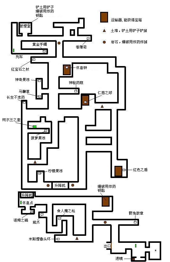 迷宫中要利用管理室储物柜里三种道具清除障碍物才能继续前进