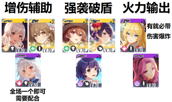 最好用1辅助+1输出,再补一个辅助/破盾角色。