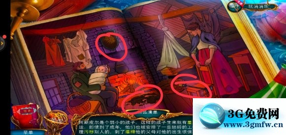 图一安装宝石,获得书密码提示,石板细节,箱子护身符 安装书密码,玩游戏,如图,获得颜料 画上涂颜料,获得石板部件 图一箱子获得抓子,和魔法元素空 用钳子拔钉子,获得浆果 用酸,烧掉锁,获得苹果 苹果喂动物,获得石板部件,露水 把石板给女人