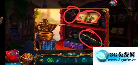 打开获得魔法棒,书点三次,获得三种草药,有一个雕像