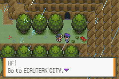 回到冰系道馆的城市并向右出发,遇到黑发男,对战后黑发男离开,冰洞里走来一个**挡住主角,不让主角进入冰洞。