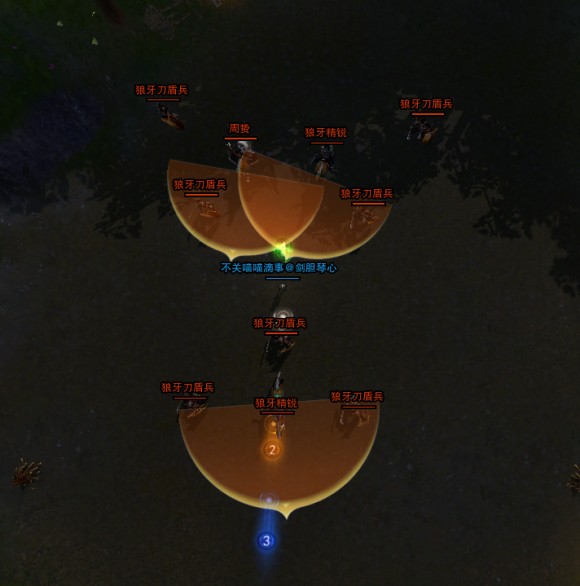 P1阶段,优先单点掉一只刀盾兵,捡一个盾(建议副T),boss点名的两个人出去排圈的时候大团3号点抱团,带盾的人2号点面对1号点,三个圈拍完后两人回3号点等骑兵冲锋,之后打掉精锐及其余刀盾兵进入P2