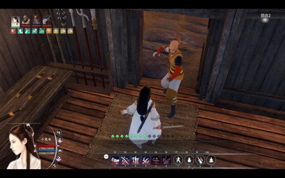 这一战小龙女要独自对战潇湘子、尹克西、尼摩星三个,正面打是打不过的,还好可以跑出去躲到屋子里,一个一个收拾。这一战的奖励很重要,玉女素心剑法的左右互博奥义。