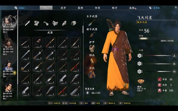 打通射雕时56级。我不喜欢专门练级,还有不少秘籍经验没有转化。
