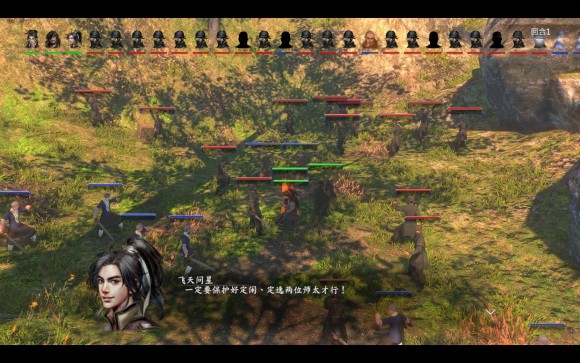 还差最后一本天书,笑傲江湖。笑傲线的团战特别多,每次都一大堆敌人。保护定闲和定逸师太这一战,袁承志先出手,给两个师太加上子午防御,然后躲到一边,胡一刀负责右边一堆,主角给两位师太补血,然后去对付左边一堆。要注意的是左边一堆中有个用阎王帖的家伙,得躲着他。