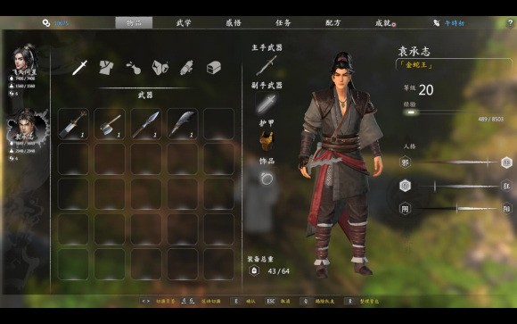 接下来做原版支线任务,一边加声望,一边加正义值。声望达到50,就可以去武当派学武当心法。主角和袁承志的内功路线都走阴。