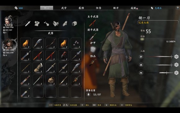 胡一刀的配置:齐眉棍佳品+五郎八卦棍+长江三叠浪