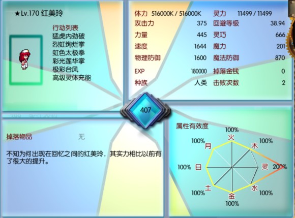 美玲每次暴击后会触发连击,每HIT暴击会恢复2‰的HP和SP,累计3次连击后会发动大鹏坠击拳,大鹏坠击拳不会触发连击
