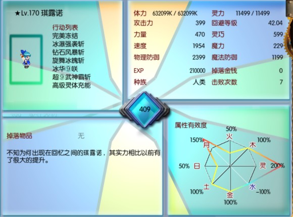 每次攻击会附加冻风状态,在该状态下速度和灵巧降低至75%,全防御降低至95%,水属性抗性降低至最低,如果目标已经处于冻风状态则为目标附加冰封状态