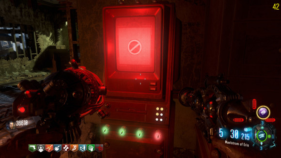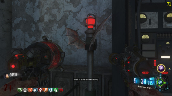 来到孵化室以后 我们到孵化室的一楼 后面有一台红色电脑 需要所有玩家一起对着电脑按下F