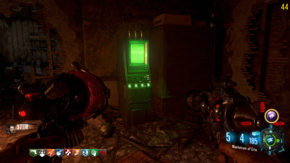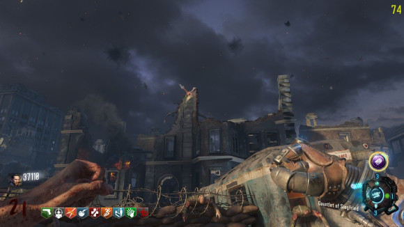 从这个角度可以看到卡在楼的残骸中的尼古莱 我们按下Q激活齐格飞护手