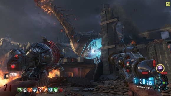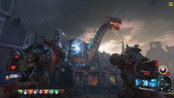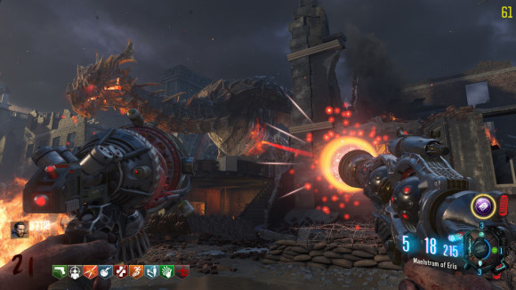 龙喷完火之后 会首先飞到地图的左侧位置停下 尼古莱会用钢叉攻击巨龙
