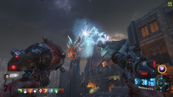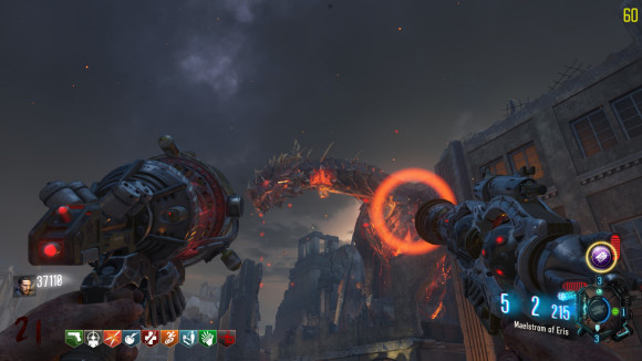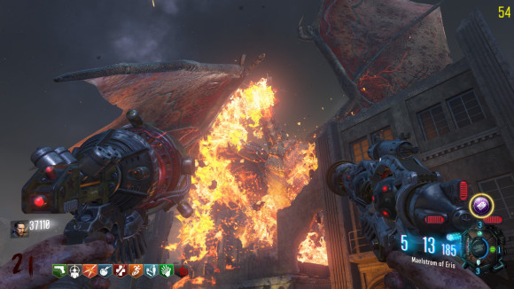 这个火球伤害很高 可以秒杀玩家 因此我们一定要将龙盾掏出来 这样可以免疫伤害