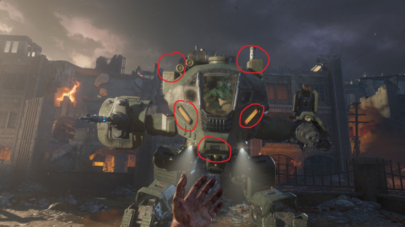 肩膀上我画出的位置 会在游戏中是不是露出来动力核心来 我们要找机会将其打爆