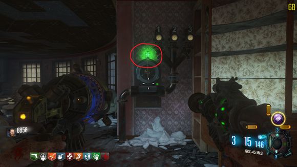 终点位置——密码盘下方玻璃管中有一个跳动紫色的加密棒