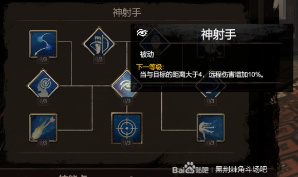从被动的字面意思理解一下就是远程输出,一个字来讲就是强,无敌的强,很多新手玩家都觉得弓箭的体力消耗很大,其实不然,除去那些花里胡哨的主动技能,弓箭的耗能是在可以接受的范围之类,后期在流派和装备的加持之下,自己体力没用完对面就死光了.........相比游侠略显苛刻的条件,神射手十分万用。