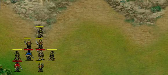 李氏三父子往前走, 第二回合伏兵出现 全灭 不难 。注意李氏三父子特技 (身边友军越多时 攻击越高)尽量让三个人站在一起输出最大化。