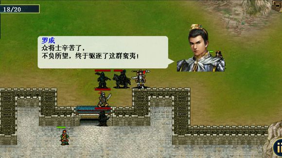 开局罗成战马受惊,身后跟了一队追兵,往右边田垦跑,两回合后秦用(友军)出现,注意给他补血,别让他死了。力士和步兵站关隘,利用张公瑾加buff,碟报以及弓兵牵制敌方法师,杀死伍亮关前敌军全体降攻,总体比较简单。