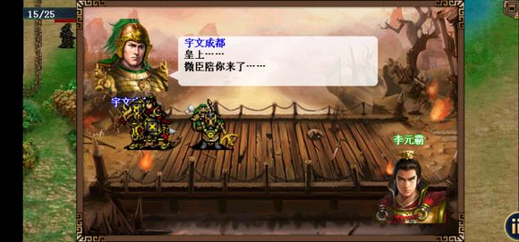 开场加buff先灭桥上敌军,李密跟着秦琼跑注意别让秦琼太突进,第四回合结束友军出现来打酱油,第五回合结束宇文成都出现,可以让步兵带令箭堵桥,十一回合李元霸带两个玄甲骑出现(尽快触发他和宇文成都单挑),注意用弓箭手控住医生,敌军少于一定数量杨林主动出击,注意控住他,触发单挑后全灭过关。(触发罗成单挑后罗成敏捷+3)