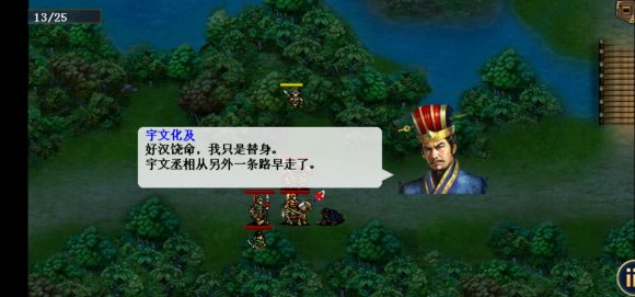 这把建议装备散搭,不要套装。上官狄想保住需要一个战盾,屈突盖带呼雷豹一次可以降两个兵攻,侯君集带夜行衣加金牌去堵路,开场敌军中埋伏全体定身(全体加攻真的不是我们被包围了吗)程咬金带斧头,和罗成可以一个回合把宇文智及杀死,建议程咬金带金批令箭卡对面枪兵位置。鲁明星反正我保不住(隋唐这异常状态跟假的一样,不是一回合都控不住就是控到死),建议带张紫嫣加buff。第三回合结束真正的宇文化及带队出现在上方并且向地图左方移动第四回合侯君集出现报信,到沼泽卡住敌方sl每回合不死就行呢。其他人除马车外清完下面人后迅速往上跑(屈突盖可以留下慢慢清兵),大部队到了宇文华及也差不多没蓝了,还有就让张紫嫣去吸。击退一次后会复活加属性,君集一个刺杀带走,全灭敌军过关。