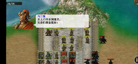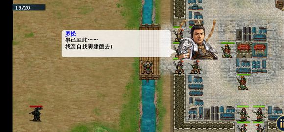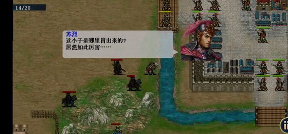 建议给柴绍装备医术。开局李元霸加好攻防buff进左边树林,其他人先脱离敌军攻击范围,当我军占据关隘后,城内敌军出击。可以把敌人放出来打。(没杀光以前渡河游戏直接失败)我方人员大部分过河后,裴元庆上官狄出现。李元霸到城门边触发和鱼俱罗剧情,两人跑去单挑,三回合后鱼俱罗被李元霸捶死,李元霸被雷劈死,魏文昇和司徒戬拿走鱼俱罗装备退场。开唐四将的触发条件我也不是很清楚。应该是要消灭城内部分敌军后出现。触发后敌军全体降防。注意利用弓箭手牵制医生和智将,最后全灭过关。三十回合内全灭得定唐刀。