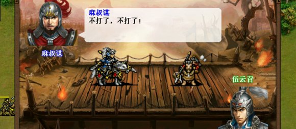 没有难度的一关,敌军开场全体降士降攻。 触发两个单挑之后,敌方所有人逃跑, 击退罗芳薛亮有麦。