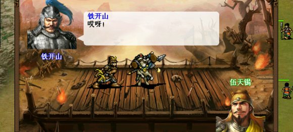 无压力的一关 第三回合我军出现 一路砍。第九回合,镇殿四将军来袭 触发剧情伍保死亡。清的差不多了就让雄阔海和伍天赐去把步兵清掉,留点小兵在外面给朱灿,他打不动步兵还会卡位置。清掉张大新身边一个发师后,就可以把他杀了。
