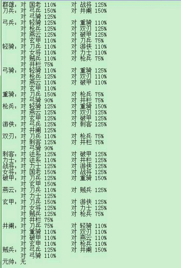 要买装备的朋友可以开始入手了。推荐购买步兵套,梅花亮银锤和飞将凯。其他的重点推荐天师套,刺客套可以考虑购买。另附部队属性克制图一张