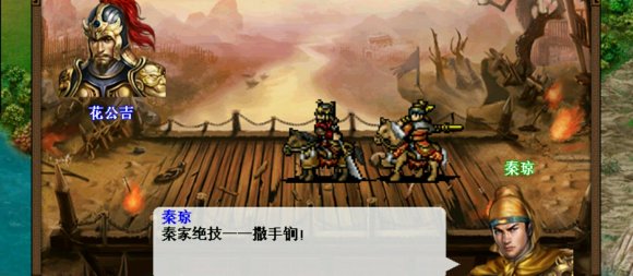 杀敌要速度,开唐四将混乱中毒挂上sl不掉,尽快上桥。上桥4回合后,秦琼与王谢二人在地图最右上角出现,尽快触发单挑,然后开始收割。