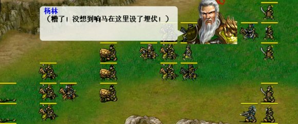 每击退一个太保敌军下降一项属性,老杨林降状态hp。压级的朋友击退运粮车防杨林走就行。想全灭的朋友建议选一,杨林用齐国远致盲,侯君集挂中毒sl不掉。清完杂兵最后解决他。
