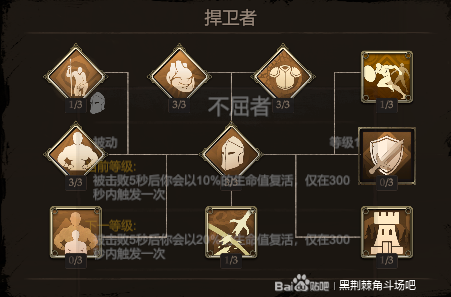 有人又要问了,不屈应该点满,回30%的血,那你就错了,后期团战,当你复活的时候,你的队友已经基本GG了。这个技能1V1还是有一定用处的。有人要问了,为什么压制不点满,偷偷告诉你因为点数不够了。有人又要问了,为什么堡垒不点满,还是那句话,点数不够了。