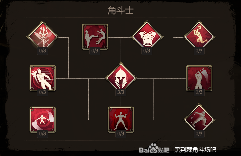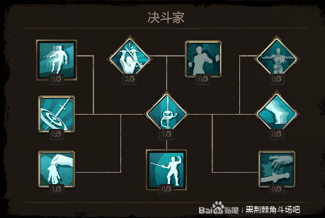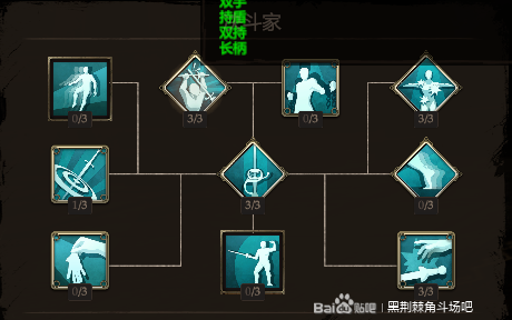 这个我点错了,中间还是一样点1,基本不存在1V1的可能,后期都是团战。格挡反击点满,寻找弱点满,缴械点满,神技。精准打击点满。