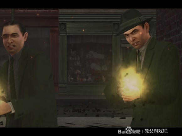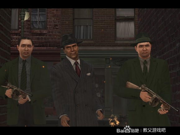两把汤姆逊冲锋枪同时扫射了……顺便说一下图中右边的那位带着帽子的巴西尼家族的执行者叫作西普莱恩,他也是巴西尼的保镖,你在后面还会有机会见到他的。