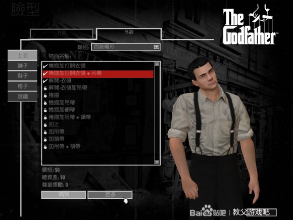 点左上方的“外观”选项可以换衣服和服饰,但是现在主角一毛钱也没有,所以买不了新衣服,只有刚开始免费送的几件。
