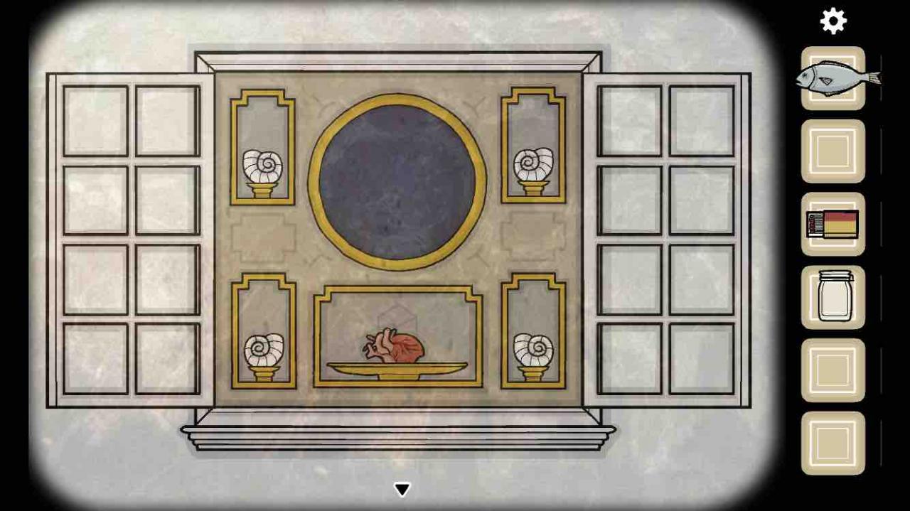 去虫洞窗户,把【海螺】全部放上去。收起【鱼】,换上【心脏】,钻!