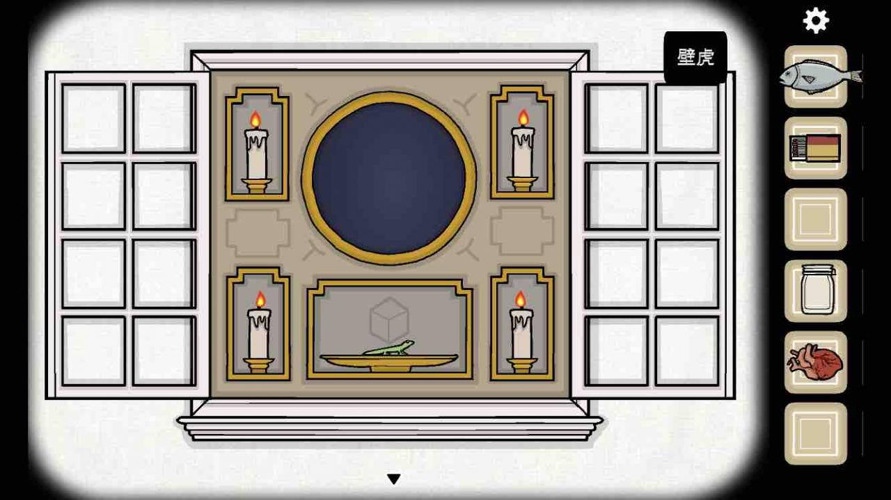 -进入『心脏』房间-墙上的【壁虎】,使用【罐子】,把它抓走。