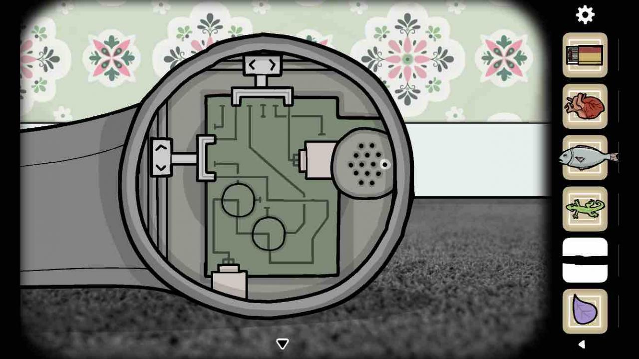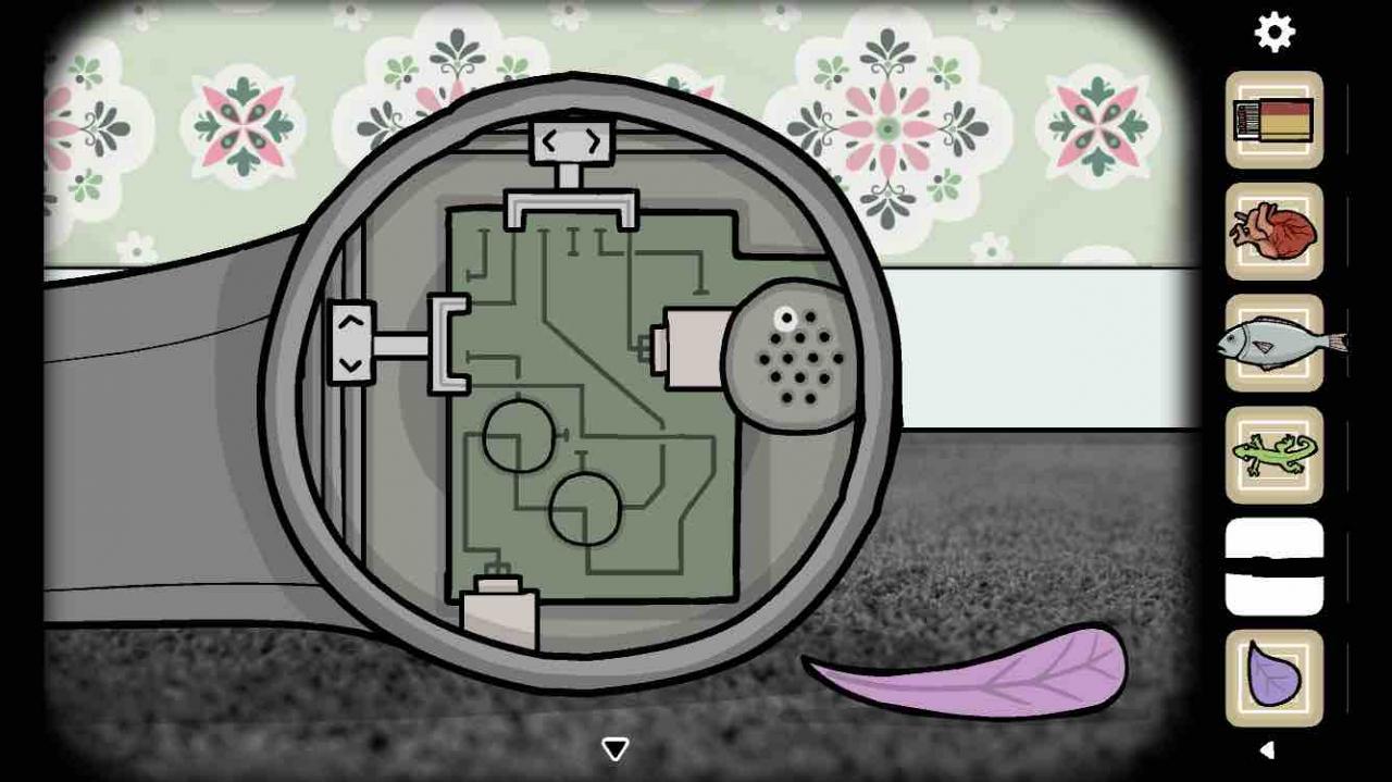 点几下话筒,话筒会掉下来,使用【刀】拧开螺丝,把电路接好,点击闪光的地方,利用电磁信号召唤花瓣???